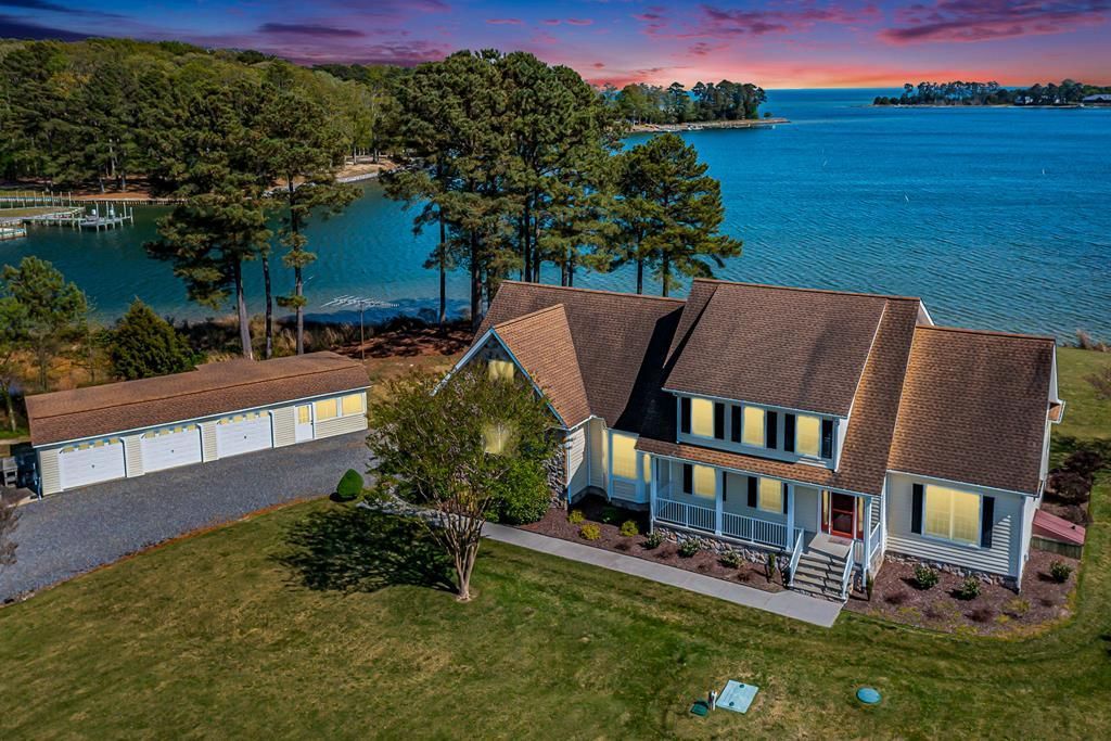 Imagine breathtaking wide-water views across protected Cranes Creek stretching out to the Chesapeake Bay, glowing sunrises, & quick boating & fishing adventures right from your backyard. This is the waterfront lifestyle so many dream about. Designed for those who truly love life on the water, this property features a protected pier with an 8,000-pound boat lift & a jet ski lift, with some of the Bay's best fishing just minutes away. Outdoor living is just as impressive, with a spacious 40' x 26' composite deck that is ideal for entertaining, relaxing in the sun, or even recreating the previous owners' pool within the deck design. The property also offers a detached 3-bay garage complete with a bathroom, plus a fantastic side screened porch with a sink that is perfect for crab feasts & easy waterfront gatherings. Inside, this beautiful 3-bedroom, 3.5-bath home was thoughtfully designed to capture the views while offering generous living spaces throughout. With 9' ceilings & an airy layout, the main level includes a family room, a spacious living room with a gas fireplace, a formal dining room, a wonderful sunroom, a large kitchen with table space, a laundry room, & a private primary ensuite bedroom. Upstairs, there are 2 additional bedrooms, each with access to a bathroom, a waterfront office, & a huge rec room with a wet bar & incredible views. Whether you are hosting a crowd or simply enjoying a quiet morning by the water, this home offers the perfect balance of comfort, space, & waterfront fun. This is a place where everyone will want to gather. (SOLD FURNISHED)